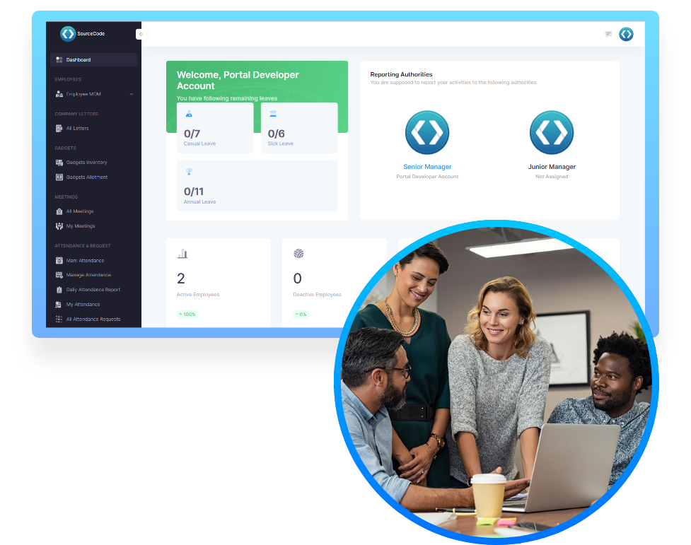 With our Mega HCM, you can mark your attendance and receive updates. An intelligent programe that enables you to swiftly handle requests and keep track of your staff's location through GEO fence via a mobile app.
