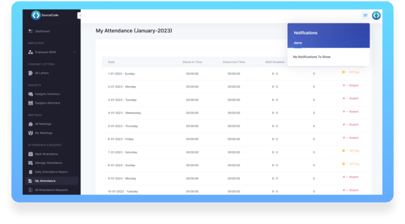 Every organization should have a system in place that gives them updates and notifications of important events. Companies can easily access control systems by using our software to get automatic notifications and report generation. The cloud-based attendance management system has the option of notifying its users (auto alert) with important updates.